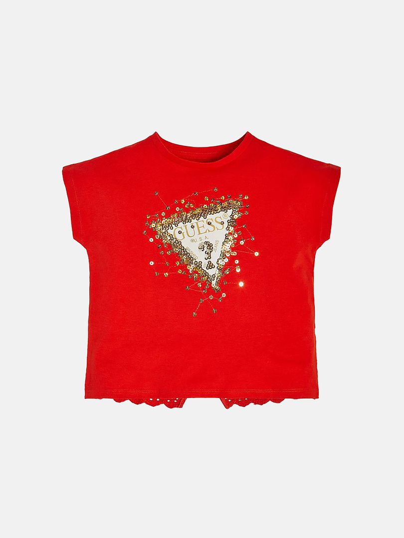 JUNIOR GIRL - SEQUINS LOGO STRETCH T-SHIRT